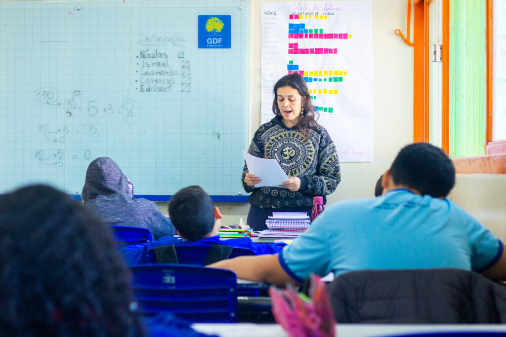 “A gente ensina os professores a aquecerem e a desaquecerem a voz para que tenham mais consciência de como usar a respiração, a articulação, a postura — para que coloquem essa voz de uma forma saudável, com projeção vocal, mas sem causar sobrecarga no aparelho fonador”, explica a fonoaudióloga.