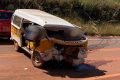 Um motorista bateu na traseira da kombi, danificando o automóvel e móveis na parte de dentro